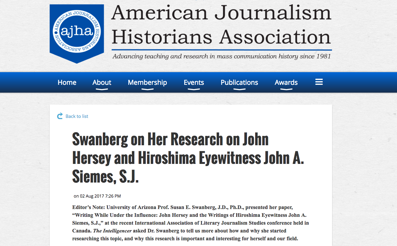 “Borrowed Chronicles: William L. ‘Atomic Bill’ Laurence and the Reports of a Hiroshima Survivor” in Legacies of the Manhattan Project: Reflections on 75 Years of a Nuclear World (ed. Michael Mays)